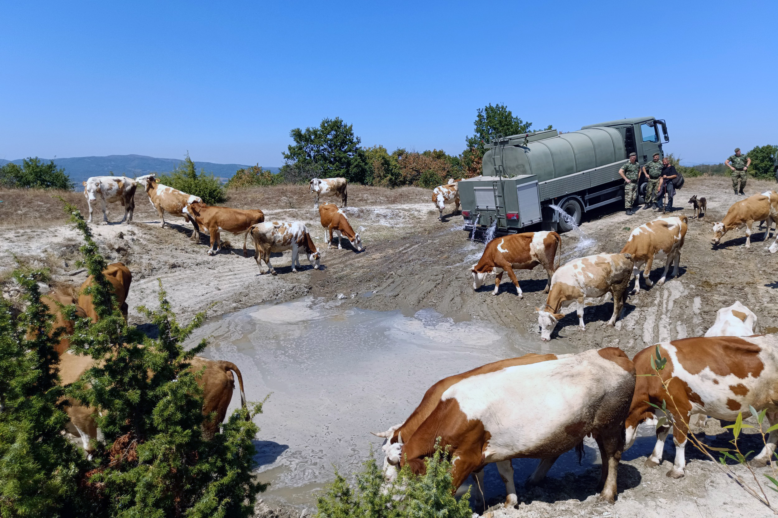 Bujanovac, 24. avgust 2024.- Radi pružanja pomoći u snabdevanju vodom ugroženih životinja, Vojska Srbije od danas angažuje snage i sredstva u ataru Donjeg Novog Sela kod Bujanovca.