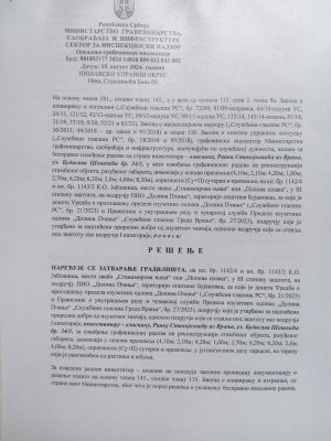 Objekat je u vlasništvu R.S. iz Vranja. Rešenje o zatvranju gradilišta donelo je Odeljenje za inspekcijske poslove Ministarstva građevine, saobraćaja i infrastructure.