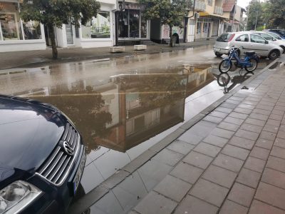 Bujanovac, 11. septembar 2024. Voda koja se, zbog obilne kiše koja pada od utorka, nakupila kod Muzičke škole u centru Bujanovca, počela je da se povlači i ostala je samo uz desni trotoar u pravcu ka parku. Poplave koje je juče bilo na ovom potezu više nema, o čemu svedoči i fotografija koju je našem portalu poslao direktor JP Komunalac Amir Džaferi.