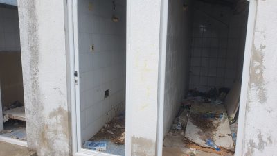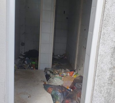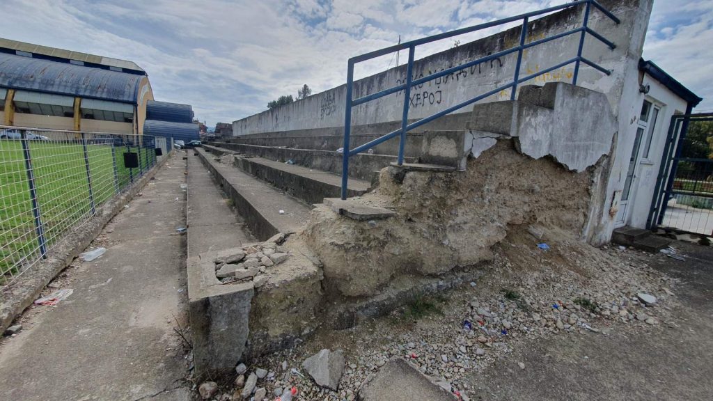 Toaleti na samom ulazu na stadion su zapušteni, prepuni smeća i potpuno van upotrebe, a tribine se polako urušavaju.