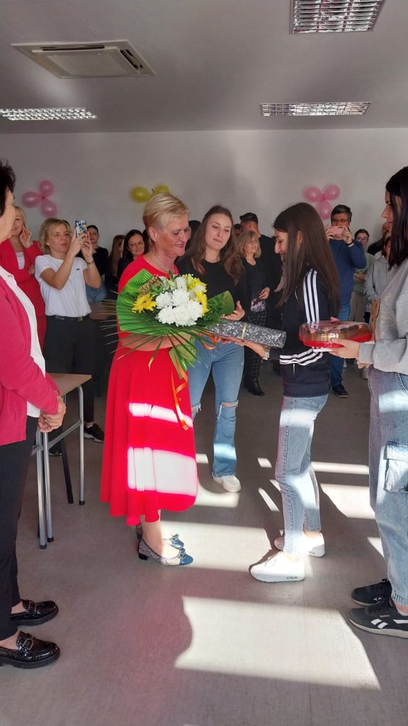 Bujanovac, 26. oktobar 2024. Vesna Novović, dugogodišnja profesorka ekonomske grupe predmeta u Srednjoj školi „Sveti Sava“ u Bujanovcu, otišla je u zasluženu penziju, a da joj poslednji radni dan ostane u najlepšem sećanju potrudio se kolektiv škole zajedno sa učenicima.