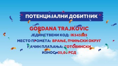 Bujanovac, Vranje, 27. oktobar 2024. (Foto RTS/ snimak ekrana)- Da se od sreće ne može pobeći dokazuje Vranjanka Gordana Trajković. Ona je u prvom kolu novog ciklusa nagradne igre Uzmi račun i pobedi dobila stan u naselju Zemunske kapije u Beogradu, a visina dobitnog računa je 35 dinara!