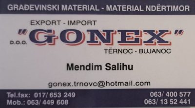 Stovarište građevinskog materijala „Gonex“ iz Bujanovca nudi vam po najpovoljnijim cenama sve vrste građevinskog materijala, u koji spadaju cigla, crep, cement, rezana građa, fert gredice, fasada, bekament, isomat, krovni paneli i još mnogo, mnogo toga.
