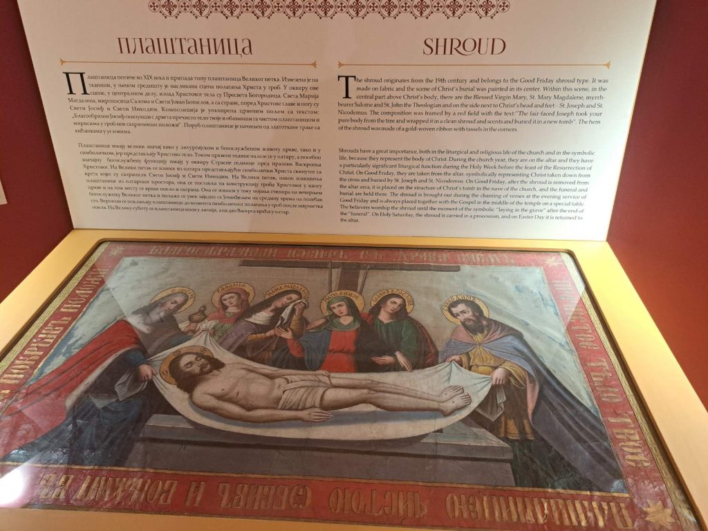 Ovaj najstariji i najznačajniji deo manastirske riznice čine bogoslužbeni predmeti s kraja 18. veka do polovine 20. veka poput ikona, relikvijara – kivota, krstova, kadionica i svešteničkih odeždi. Najznačajnije blago svakog manastira su svete mošti te riznica čuva i nekoliko primeraka drvenih kivota.