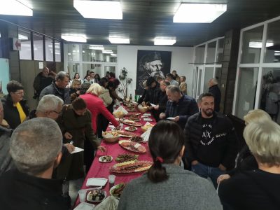 Nakon razgledanja izložbe posetioci su uživali u koktelu u holu ispred biblioteke, za čije su serviranje bili zaduženi učenici S SŠ “Sveti Sava”.