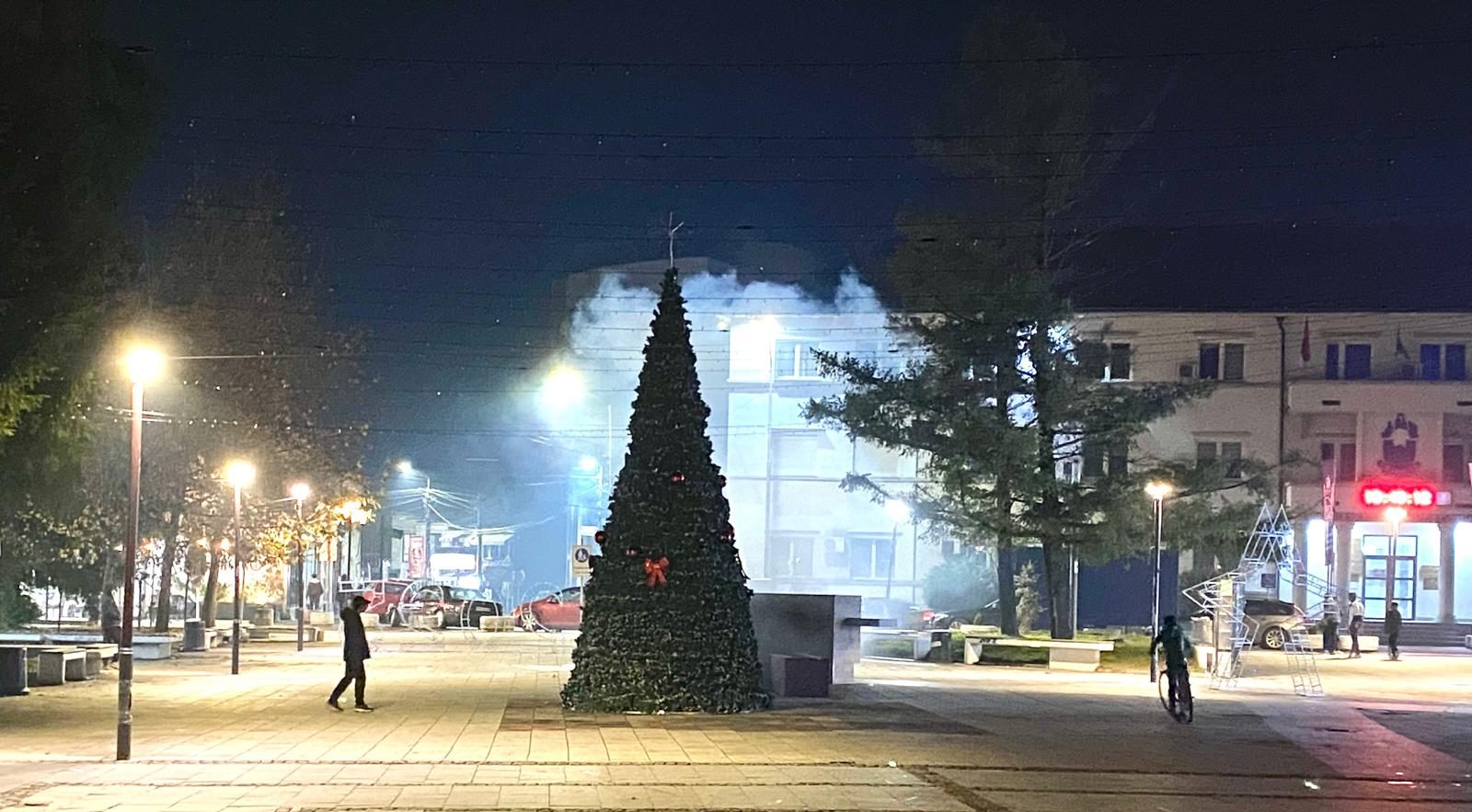 Bujanovac, 9. decembar 2024. – Novi izgled bujanovačkog šetališta, ali ne zbog velike novogodišnje jelke koju vidite na slici. Šetači koji su večeras izašli na vazduh bili su iznenađeni. Novi izgled iznenadiće svakako i Bujanovčane kada u utorak ujutru krenu na posao.