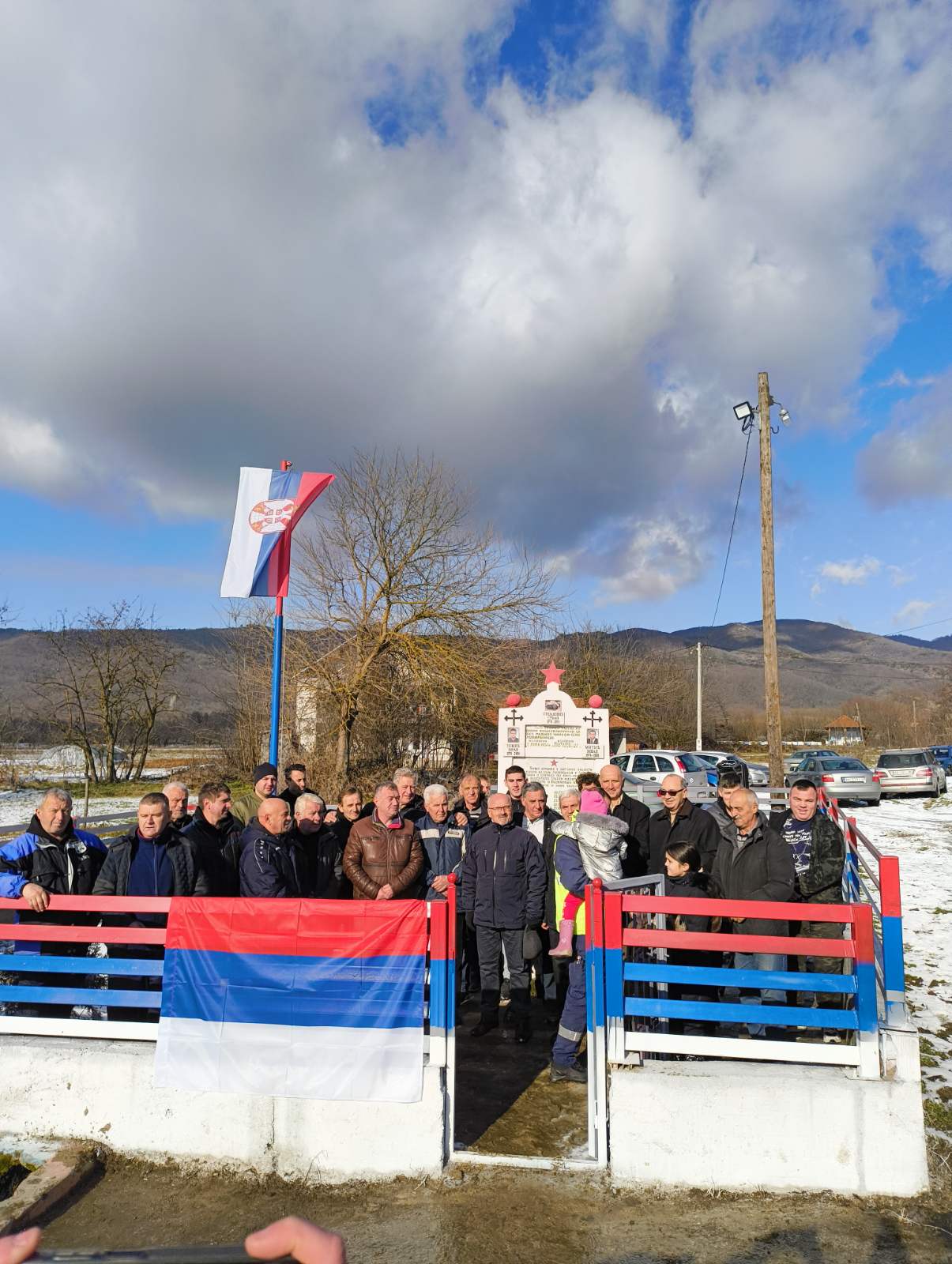 Bujanovac, 4. januar 2025. – Zastava Srbije ponosno se vijori na ulazu u Lopardince, na novom jarbolu kraj obnovljenog i uređenog spomenika-spomen česme palim borcima u Drugom svetskom ratu. Čast da podigne zastavu pripala je Marjanu Tasiću iz tog sela, pitomcu druge godine Vojne akademije, smer KOV.