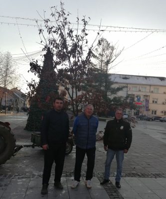 Veljković je sa saradnicima danas na trgu tradicionlano postavio i veliko badnje drvo.