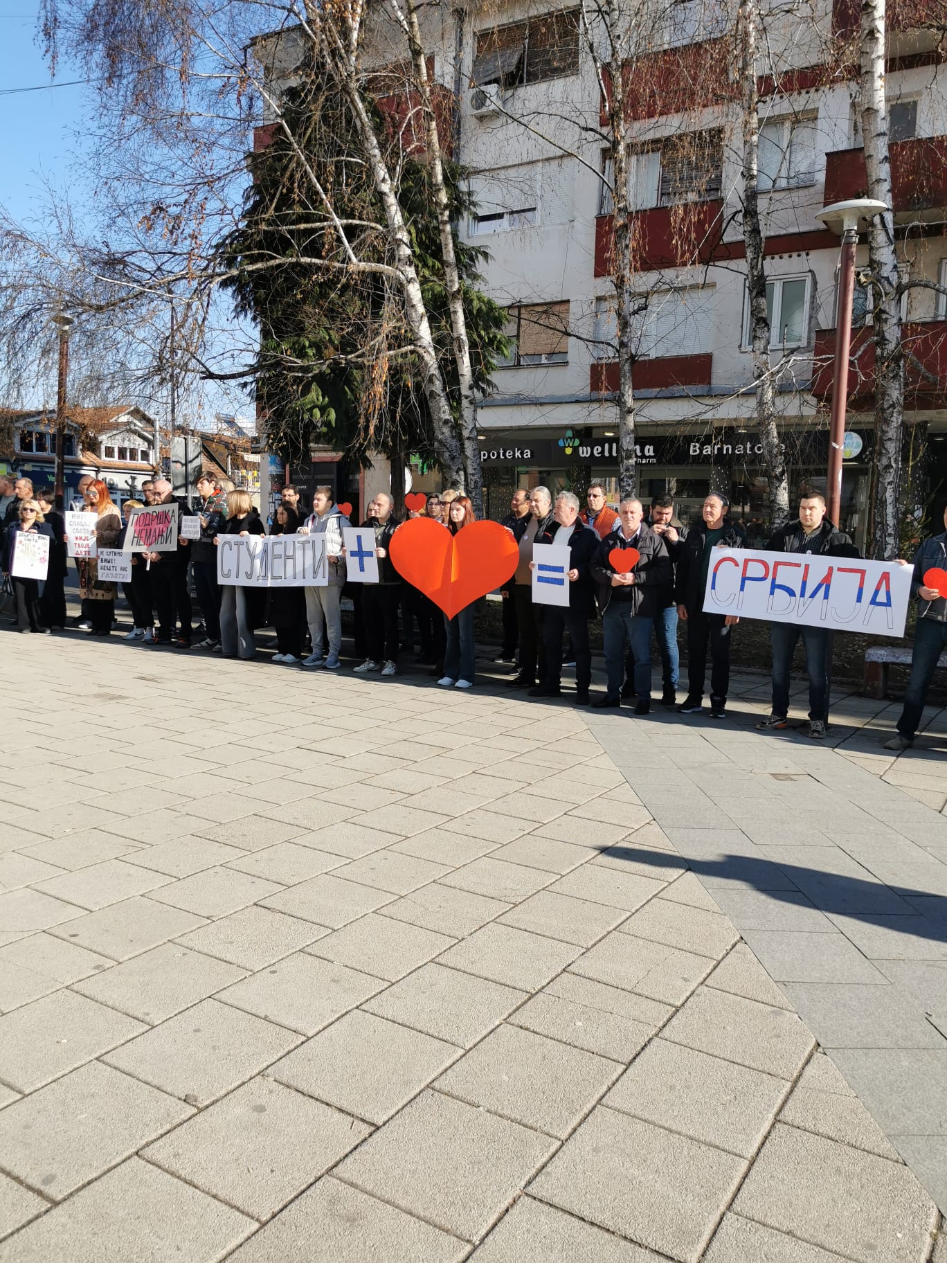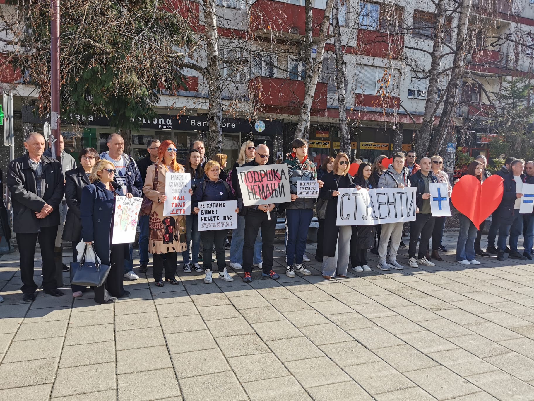 Bujanovac, 31. januar 2025. – Bujanovčani su i ovog petka, po treći put, na gradskom trgu odali poštu stradalima ispod novosadske nadstrešnice i pružili podršku studentima, đacima i profesorima u blokadi.