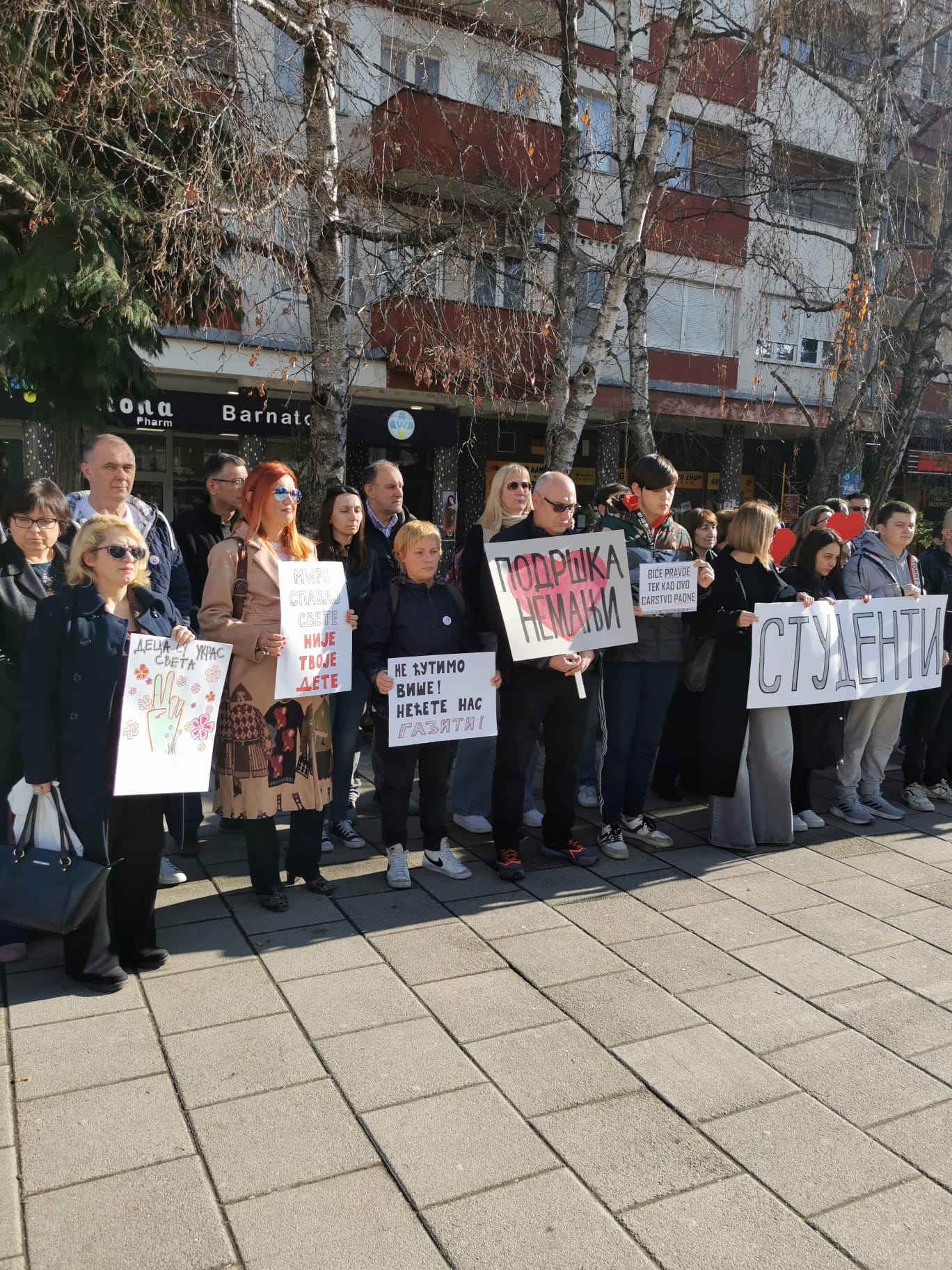 Pedesetak građana, što je više nego na prethodna dva okupljanja, među kojima su kao i do sada najbroniji bili prosvetari iz OŠ “B. Radičević” pokazali su svoje neslaganje sa stanjem srpskog društva i zdušno podržalo studentske zahteve.
