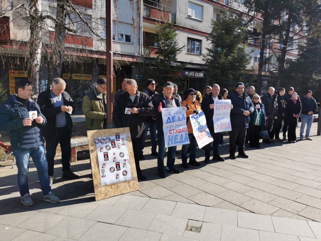 Bujanovac, 21. Februar 2025. Pod parolom “Ako vam je dobro onda NIŠta”u petak je u Bujanovcu održan još jedan protest. Građani Bujanovca, njih oko 20, ponovo su se okupili u centru grada da bi pružili podršku studentima u protestu i odali poštu stradalima u Novom Sadu.