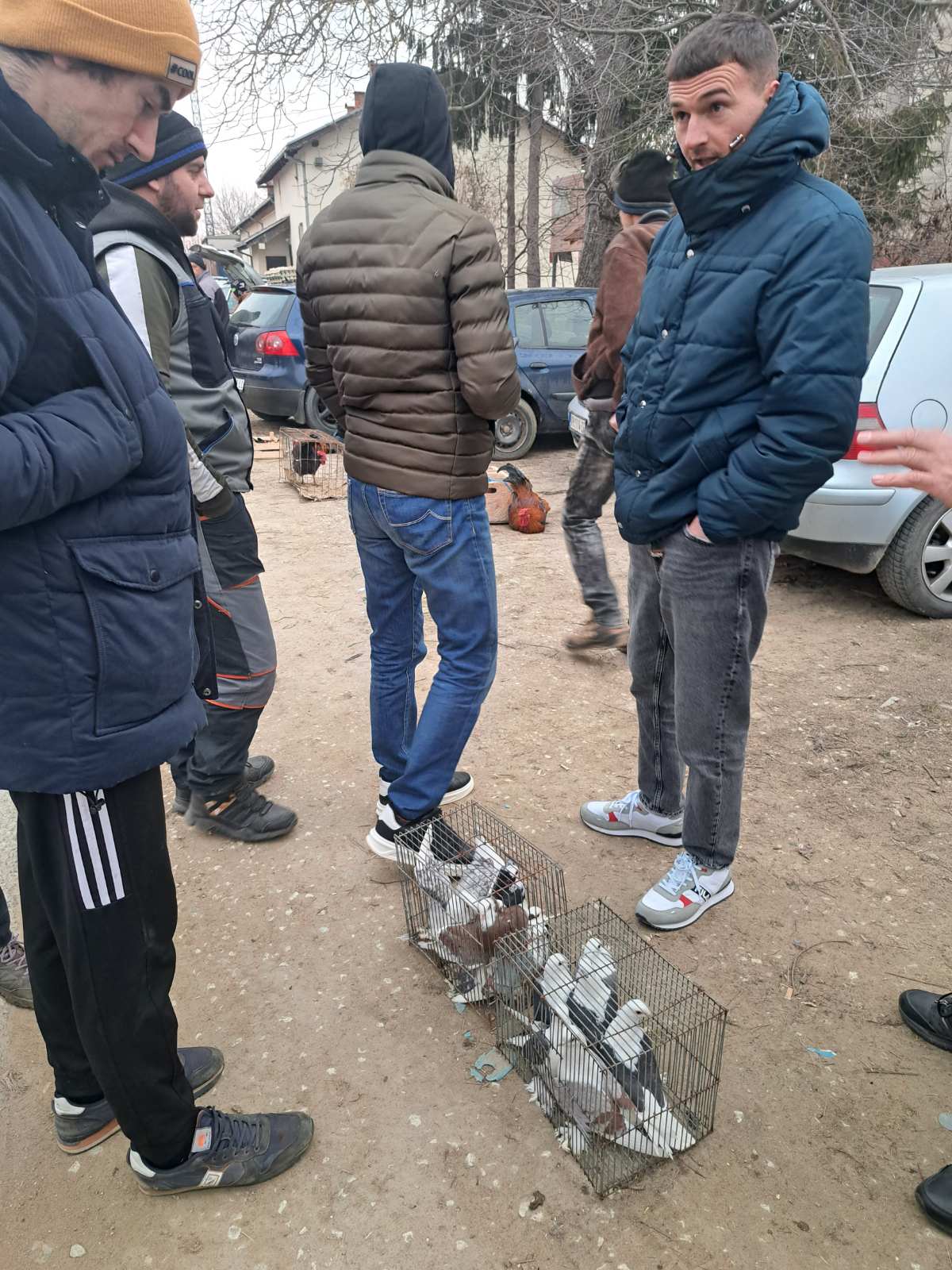 Bujanovac, Ristovac, 23. februar 2025. – Mladi Goran i Filip bili su u centru pažnje današnje pijace u Ristovcu. Nema ko da nije zastao kraj njihog kaveza sa golubovima. Na kraju, nekoliko desetina ovih ptica pazario je golubar iz Preševa.