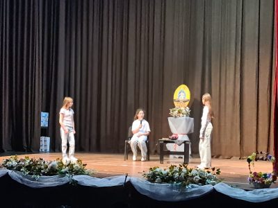 Posetioci, koji su ispunili salu, imali su priliku da uživaju u bogatom kulturno – umetničkom programu, sačinjenom od muzičkih numera, recitala, ritmičkih igara i dramatizacija na temu Vaskrsa i simbolike vaskršnjeg jajeta.