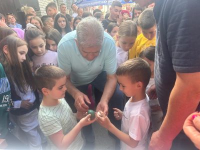 Kod mališana najveću radost izazvalo je takmičenje u razbijanju uskršnjih jaja, za čiju regularnost su se pobrinuli Dobrivoje Pina Menković i Damjan Cole Popović.