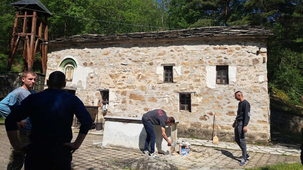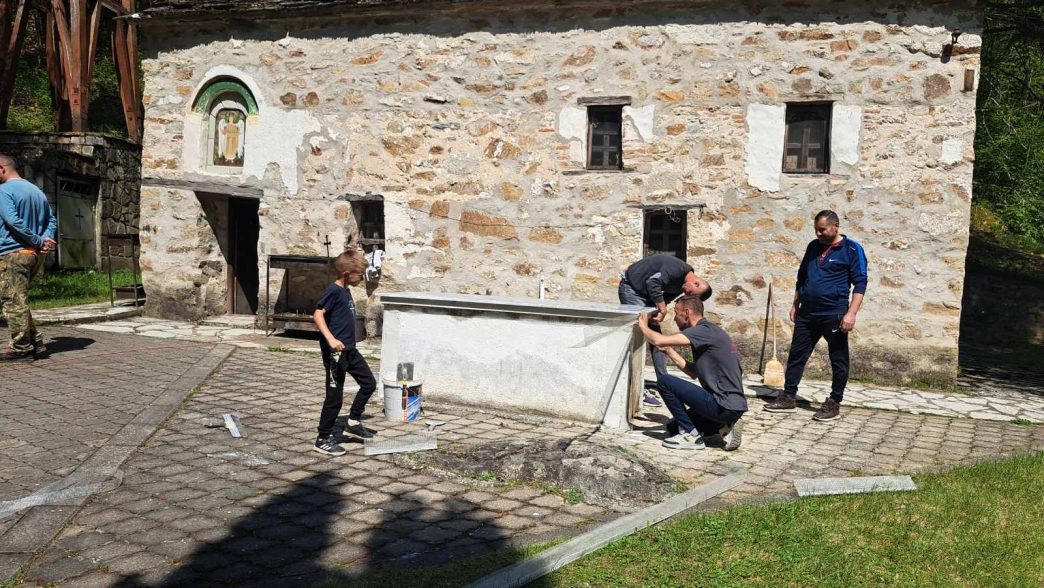 U organizaciji Crkvenog odbora čisti se prostor oko manastira Svetog arhangela Gavrila i postavlja mermerna ploča na presto.