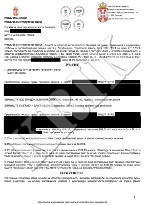 „Sagrađena je porodično stambena zgrada površine u gabaritu 193 m2, građevinske površine 508 m2, u Beogradu, opština Zvezdara. Tržišna vrednost objekta i parcele kreće se od 1 do 1,2 miliona evra“, saopšteno je iz agencije za KRIK.