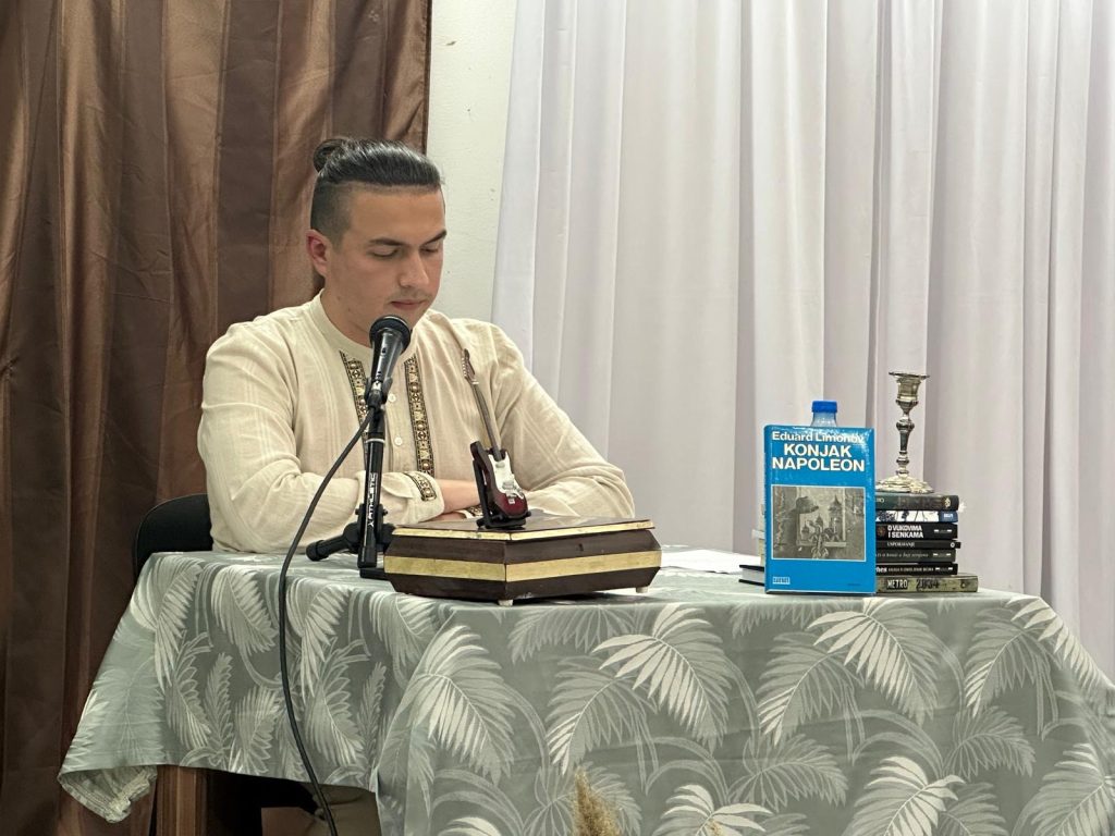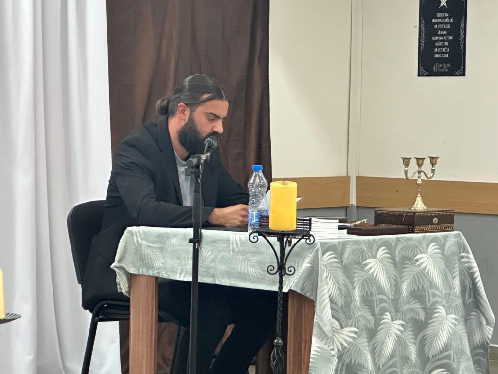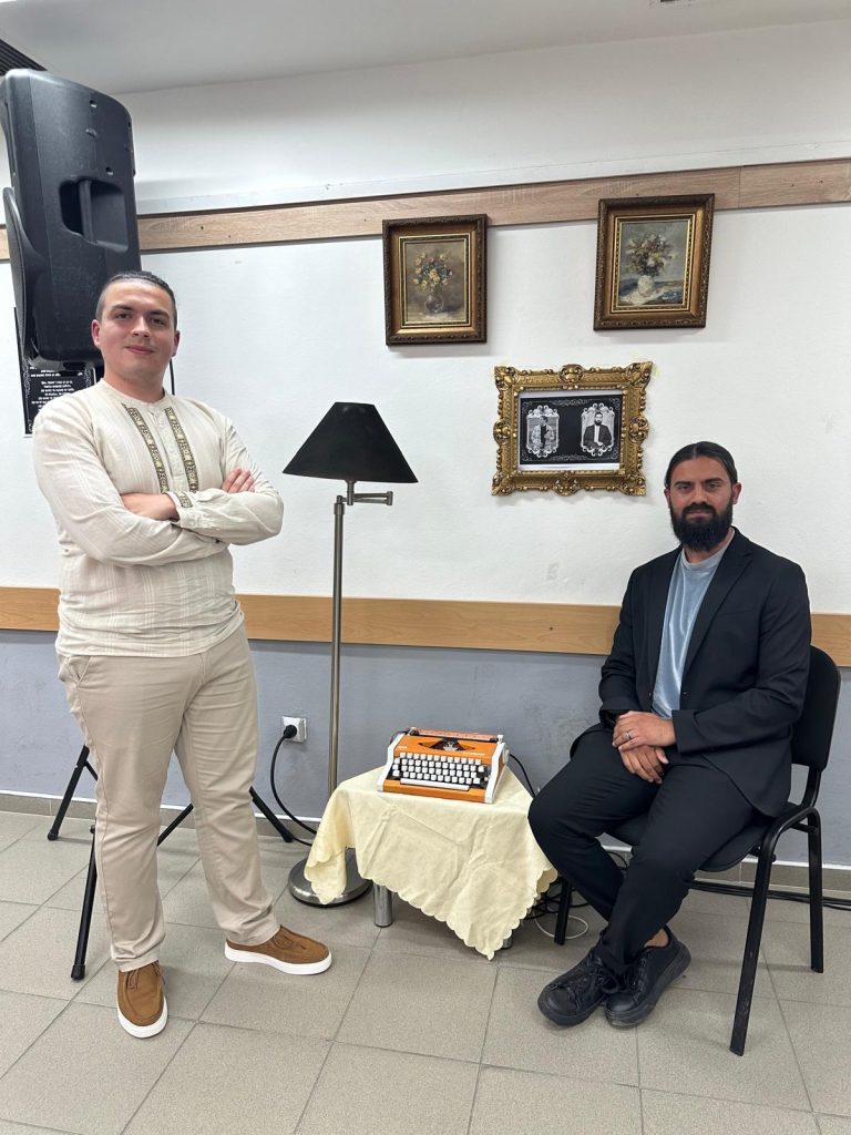 Bujanovac, 10. maj 2025. Bujanovčani Ajvanko Ismailović i Stefan Stošić podelili su svoje stihove, misli i osećanja sa svojim sugrađanima na pesničkoj večeri „Ukrštena pera“, održanoj u petak u maloj sali Doma kulture „Vuk Karadžić“ u Bujanovcu.