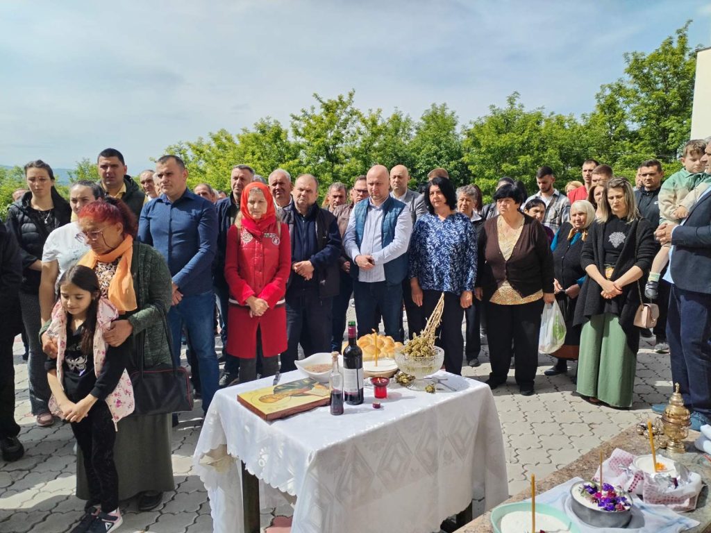 Bujanovac, 21. maj 2025. Meštani sela Srpska Kuća kod Bujanovca danas slave Svetog apostola Jovana Bogoslova i okupili su se u porti seoske crkve.