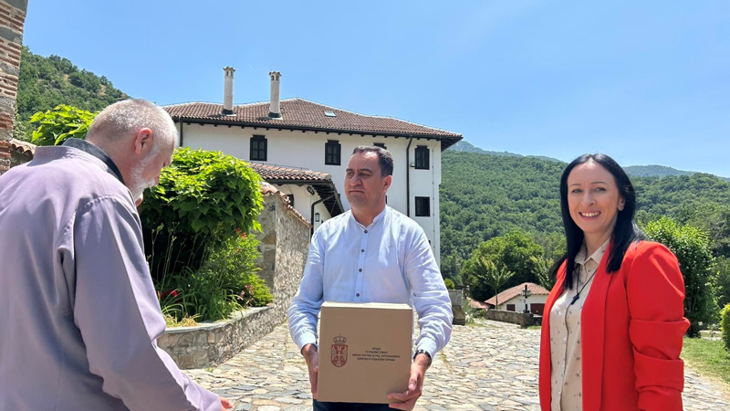 Ministarka Žarić Kovačević posetila je i manastir Prohor Pčinjski, gde je, takođe, uručila paket pomoći u vidu higijene i hrane.