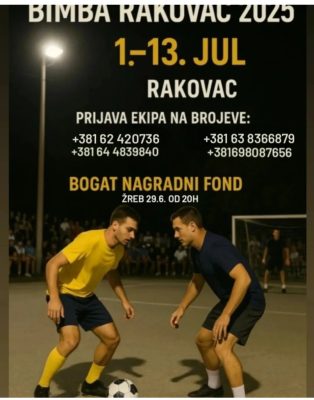Bujanovac, 21. jun 2025. Turnir u malom fudbalu “Bimba Rakovac” i ove godine će se odigrati od 1. do 13. jula u Rakovcu kod Bujanovca.