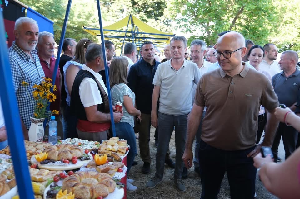 Bujanovac, 13. juli 2025.- Kao što smo i najavili, predsednik SNS Miloš Vučević boravio je danas u Gornjem Vrtogošu, gde su tim povodom, u crkvenoj porti, postavljeni šatori kao u beogradskom Ćacilendu.