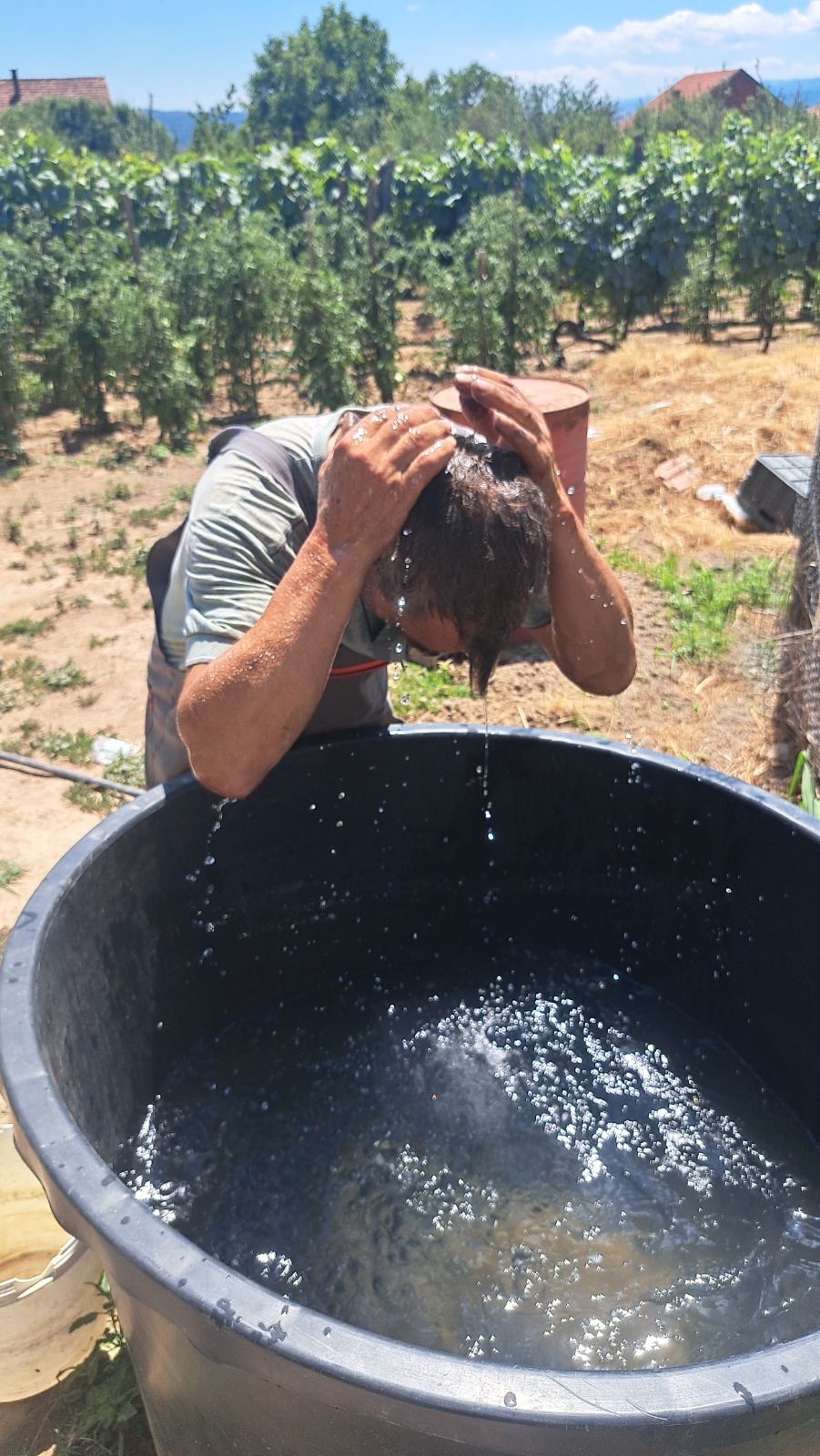 Okupao se u dvorištu vodom koju pozajmljuje od komšije koji ima svoju bušotinu pa je sipa u kacu.