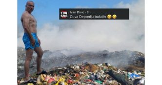 „Čuva deponiju bulutin“, kaže Disić, sa montiranom fotografijom negližiranog Stojančinog sina na deponiji koja gori.