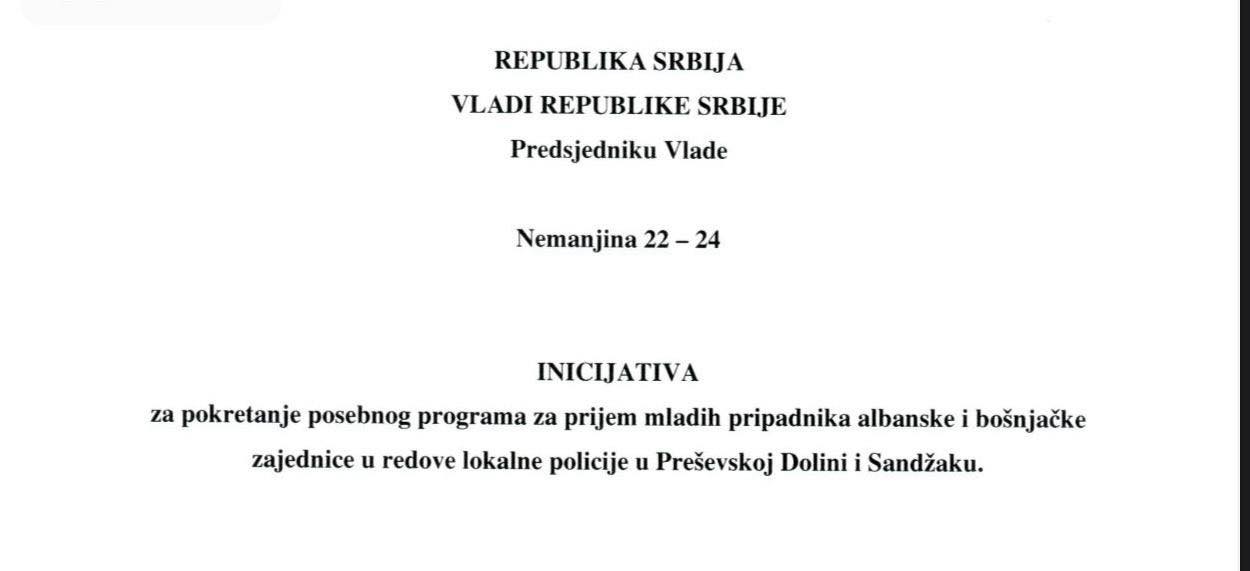 Prema njegovim rečima, predloženi program bi trebalo da traje sve dok sastav policije ne bude realno odražavao nacionalnu strukturu stanovništva u Preševskoj dolini i Sandžaku.