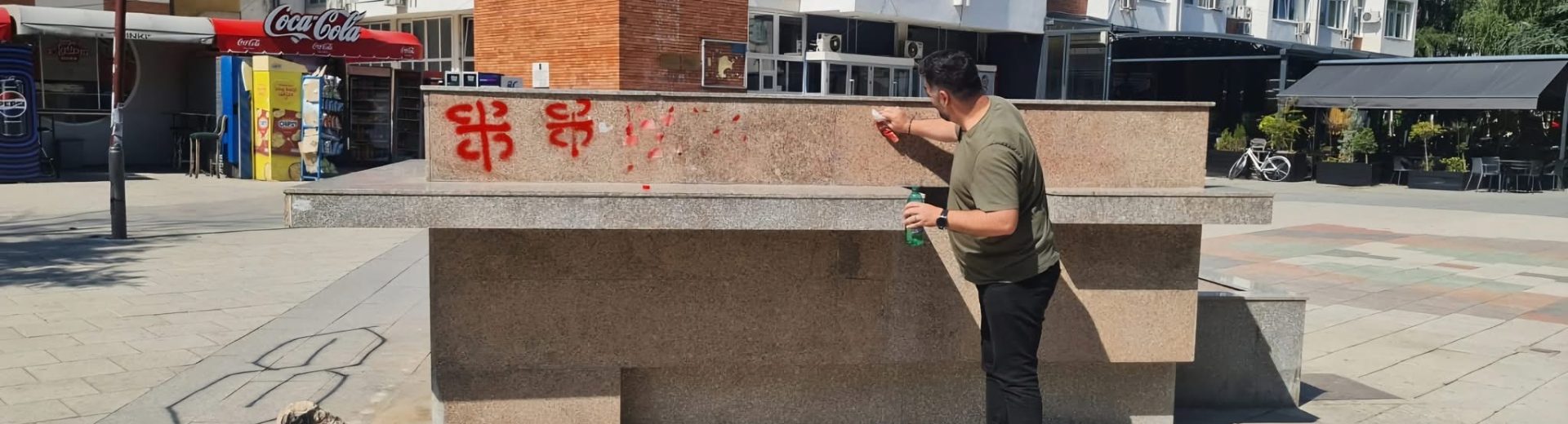 Građanski gest Ragmija Mustafija: Sa sinom obrisao grafit Ratko Mladić sa trga u Bujanovcu
