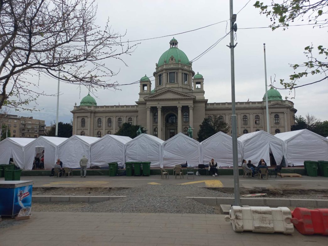 Odatle je dao podršku studentima koji žele da uče, a pohvalio se da mu je prosek ocena 9,93. Pisao je na mrežama da su „pobedili obojenu revoluciju“, a javno je pozivao na hapšenje rektora, dekana i profesora koji su podržali studentske blokade. Učesnike blokada je vređao na svojim društvenim mrežama.