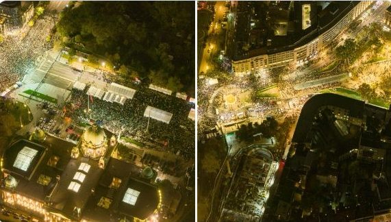 Nasuprot njima, u 18 časova nalazilo se oko 10.000 studenata i građana okupljenih u znak podrške Dijani Hrki, objavio je Arhiv na svom zvaničnom nalogu na društvenoj mreži X.