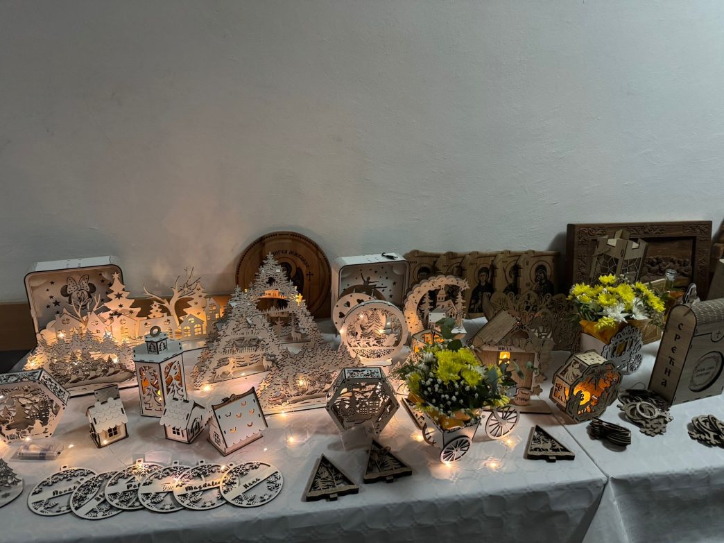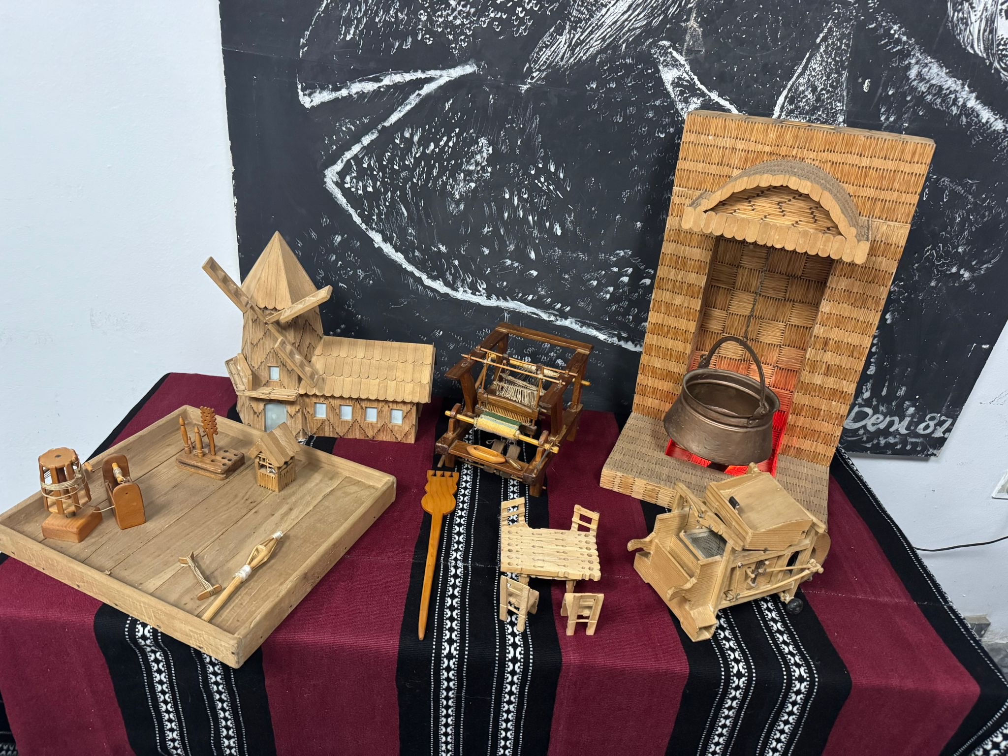 Na štandovima su se mogli videti raskošni ručno pravljeni zlatovez, tradicionalni i moderni komadi nakita, vezene tkanine i dekorativni tekstilni detalji. Izložene su i brojne drvene rukotvorine – od maketa starih kola, mlinova i kućnih predmeta, do minijaturnih seoskih ambijenata izrađenih s impresivnom preciznošću.