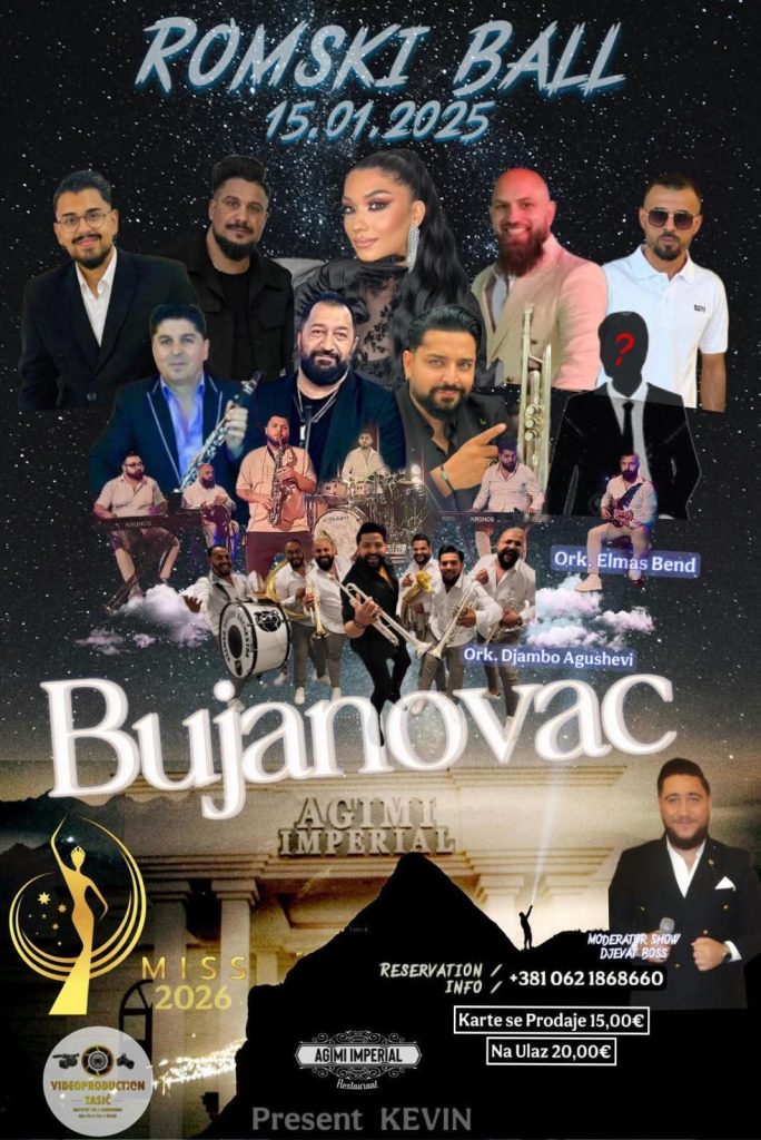 Bujanovac, 15. decembar 2025. U svečanoj atmosferi i uz bogat muzički program, Bujanovac će 15. januara biti domaćin Romskog bala – manifestacije koja slavi muziku, tradiciju i duh zajedništva. Svečanost će se održati u velikoj sali Agimi Imperial, a organizatori očekuju spektakularno veče ispunjeno vrhunskim plesom i elegancijom.