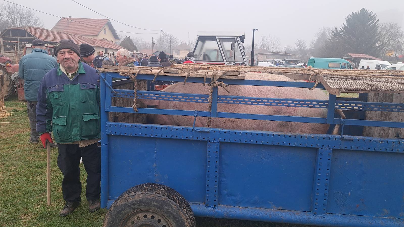 Slavoljub Trajković iz Žbevca dovazao najveću svinju, ima preko 300 kila, ima još dve kod kuće i traži  250 dinara za kilo.