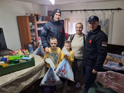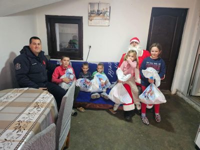 Bujanovac, 27. decembar 2025. Pripadnici Vatrogasne jedinice u Bujanovcu i ove godine organizovali su humanitarnu akciju u okviru koje su obradovali decu iz porodica slabijeg materijalnog statusa novogodišnjim paketićima.