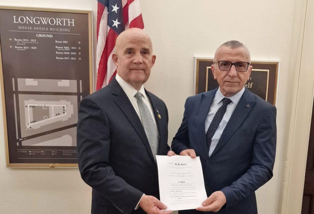 Bujanovac, 5. februar 2026. (foto Self i Kamberi) – Republikanski kongresmen Kit Self, predlagač zakona o proceni diskriminacije nad Albancima na jugu Srbije, lično je uručio ovaj akt poslaniku iz Bujanovca Šaipu Kamberiju.
