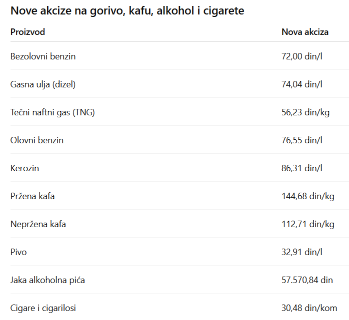 Bujanovac, 9. februar 2026. Vlada Srbije usvojila je nove iznose akciza na gorivo, kafu, alkohol i duvanske proizvode, koje će se primenjivati od 15. februara 2026. godine, a povećanja su uglavnom posledica usklađivanja sa prošlogodišnjom inflacijom, objavljeno je u Službenom glasniku.
