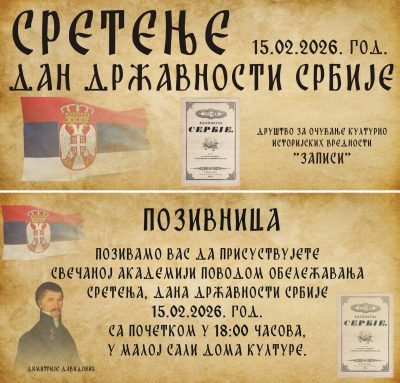 On je potvrdio Bujanovačkim da će Zapisi samostalno organizovati proslavu Sretenja u nedelju (15. februar) od 18 sati u maloj sali Doma kulture.