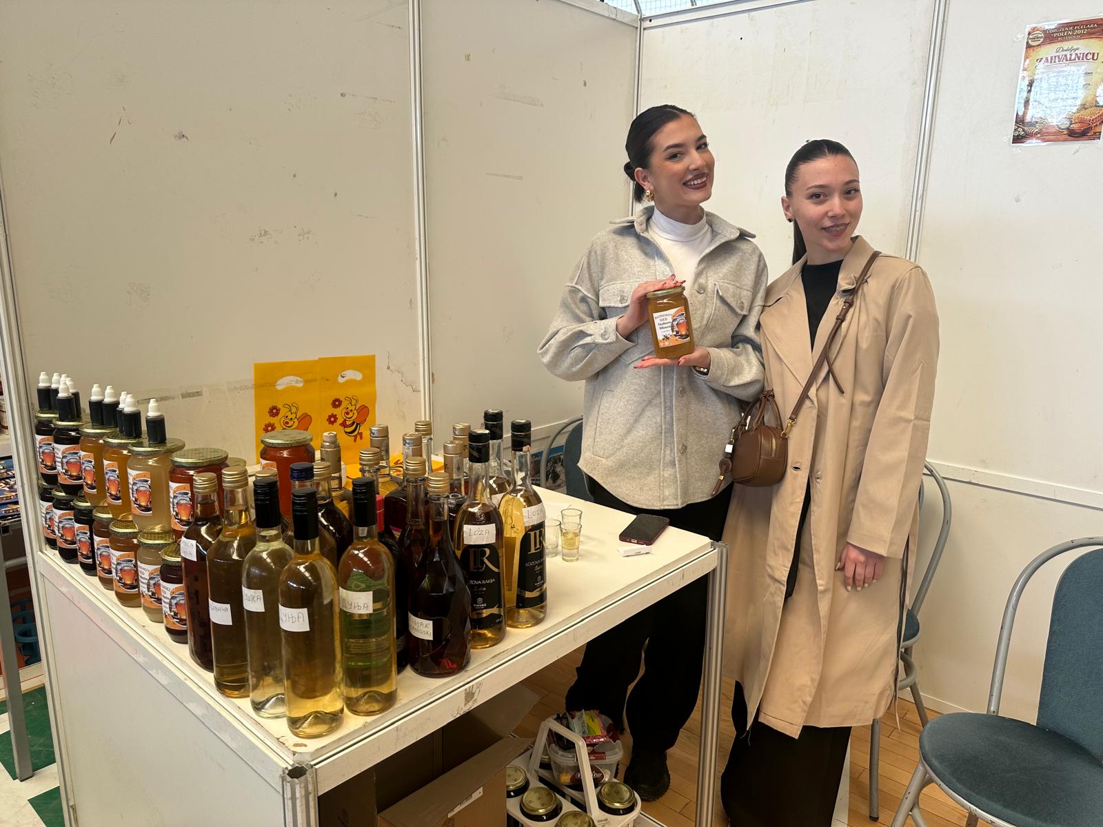 Na štandu gazdinstva Milanović iz sela Lopardince proizvode je predstavila najmlađa generacija porodice. Reč je o gazdinstvu pčelara Đorđa Milanovića, člana udruženja „Polen 2012“, čije su proizvode na sajmu nudile njegove unuke, Anastasija i Sofija.