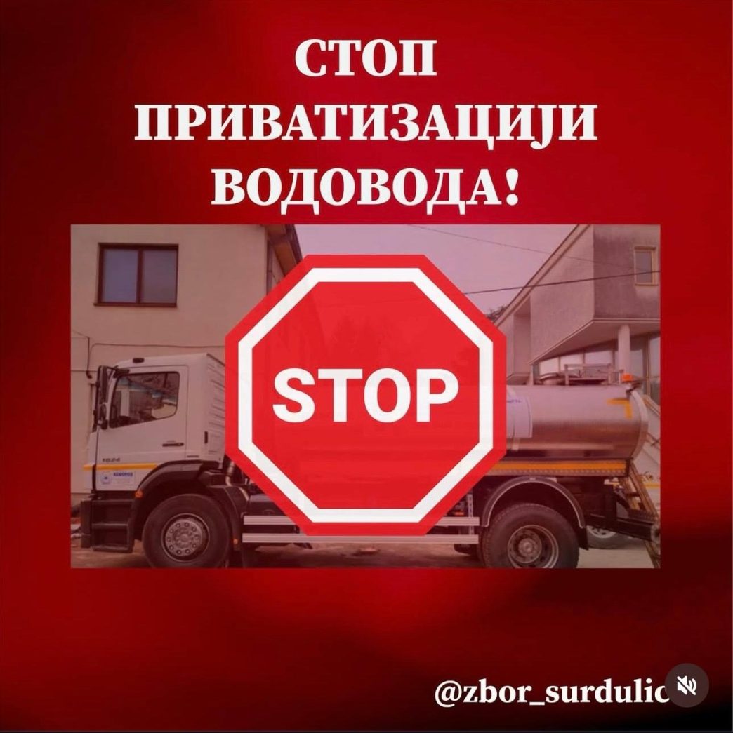 Osećamo potrebu da se kao „Zbor građana Surdulice“ koji okuplja građane koji se već duže od godinu dana bore protiv bezakonja, nasilja i pljačke u ovoj državi pa i u samoj Surdulici oglasimo povodom najnovijih težnji lokalnih političara. Naime, reč je o stvaranju preduslova i pripremanju prebačaja javnog preduzeća JKP „Vodovod“ u Surdulici i njegovih ostalih komunalnih delatnosti u privatne ruke lica bliskih lokalnoj vlasti i vladajućoj koaliciji SPS-SNS.