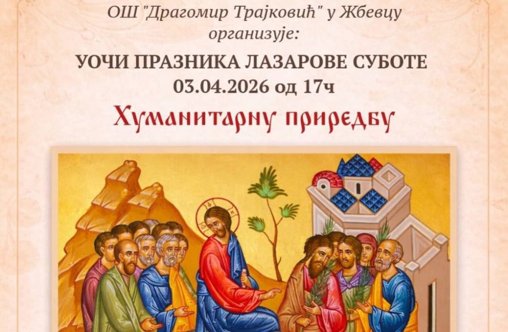 Bujanovac, 2. april 2026. Humanitarna priredba uoči Lazareve subote, uz prisustvo mitropolita vranjskog Pahomija, biće održana u petak (3. april) u OŠ „Dragomir Trajković” u Žbevcu, od 17 časova.