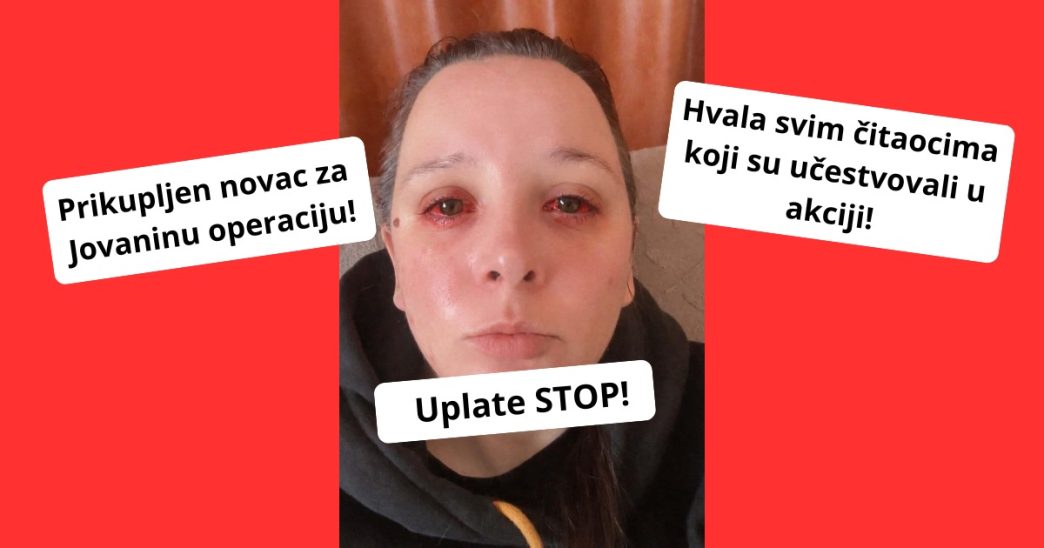 Jovana se zahvaljuje svima i moli da se novac više ne uplaćuje.