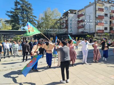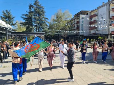 Bujanovac, 8. april 2026. Romska zastava na zgradi Opštine Bujanovac postavljena je danas uz zvuke pesme „Đelem, đelem“ – himne Roma, čime je u Bujanovcu počelo obeležavanje Svetskog dana Roma.