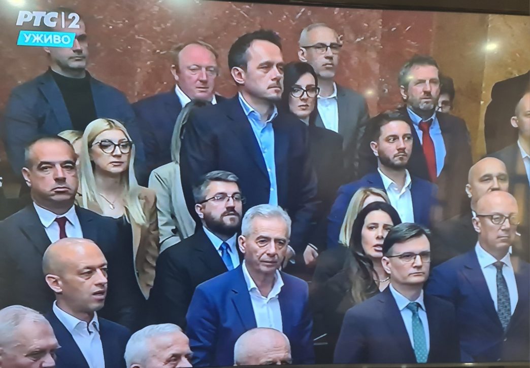 Bujanovac, 15. april 2026. Odmah posle intoniranja himne poslanici vlasti napustili su sednicu Skupštine Srbije, na čijem dnevnom redu je predlog za nepoverenje Vladi premijera Đura Macuta.