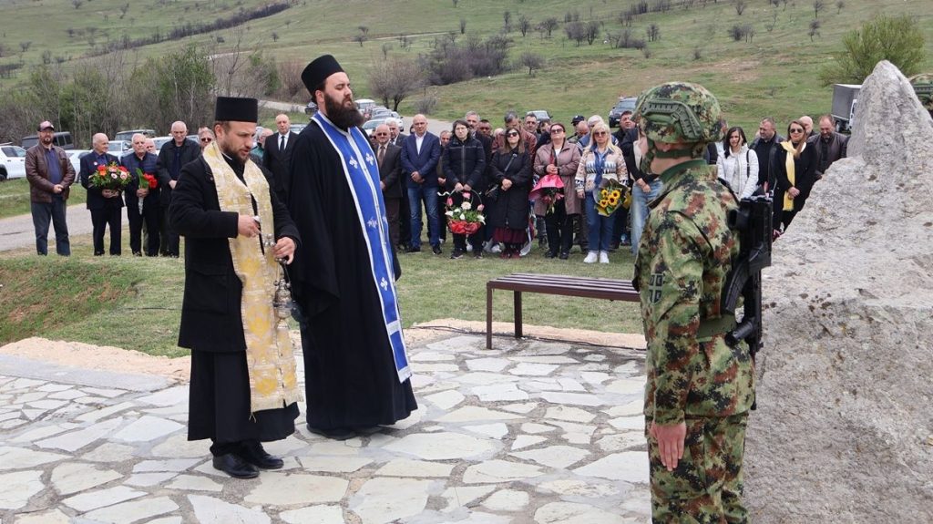 Bujanovac, 16. april 2026.(foto GU Vranje) – Polaganjem venaca i cveća na spomen obeležje u selu Reljan, nadomak Preševa, u sredu je obeležena 27. godišnjica pogibije sedmorice pripadnika 78. motorizovane brigade, koji su stradali od udara NATO projektila tokom agresije na SR Jugoslaviju 1999. godine.