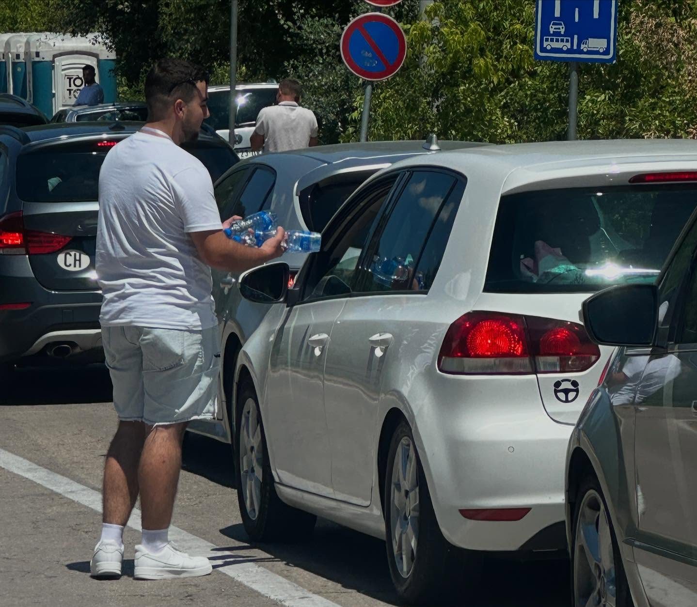 Članovi bujanovačke Kancelarije za mlade pokušali su da im donekle olakšaju čekanje u kolima po velikoj vrućini.