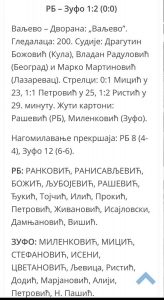 Zufo je i dalje 4. na tabeli, ali samo sa bodom zaostatka za vodećom Ivanjicom.