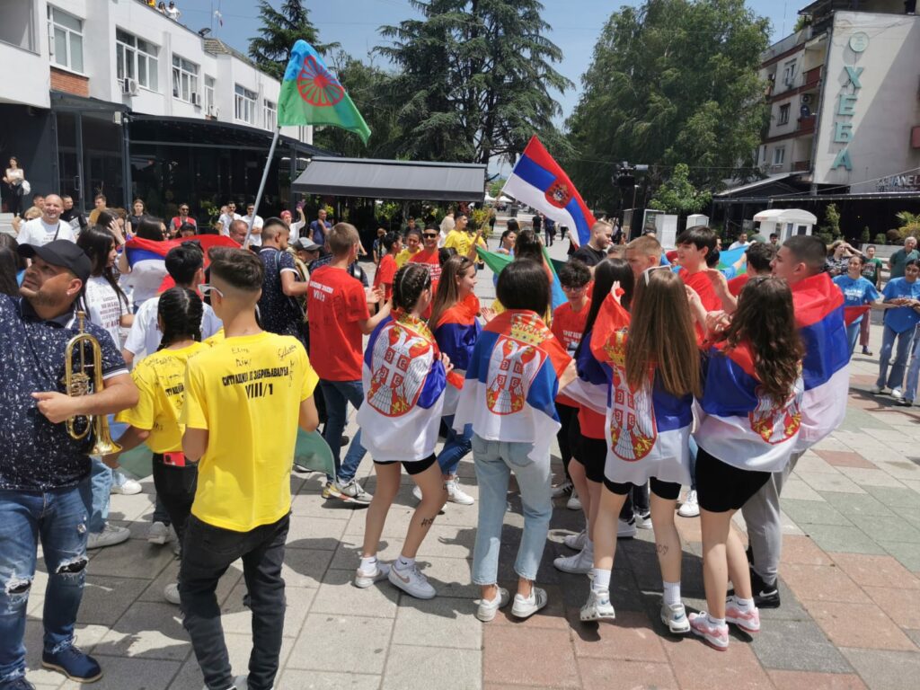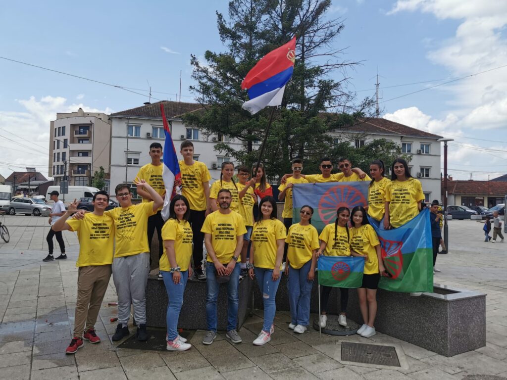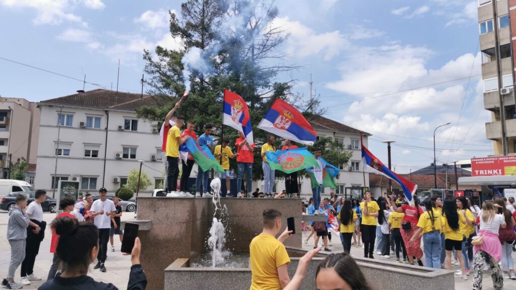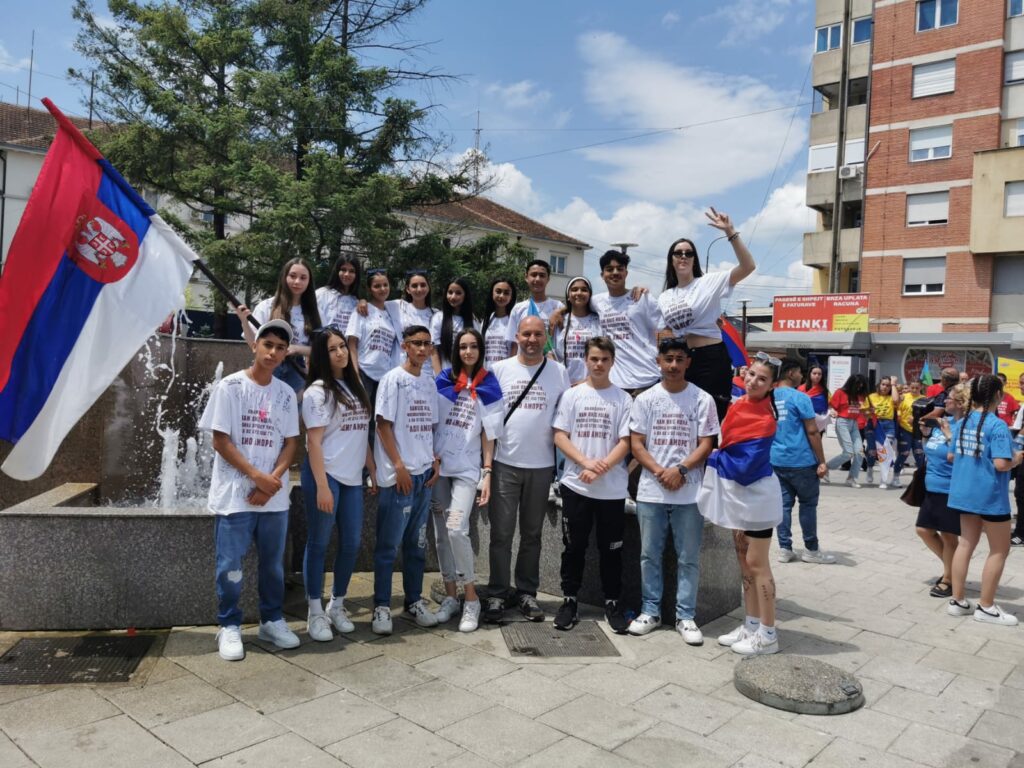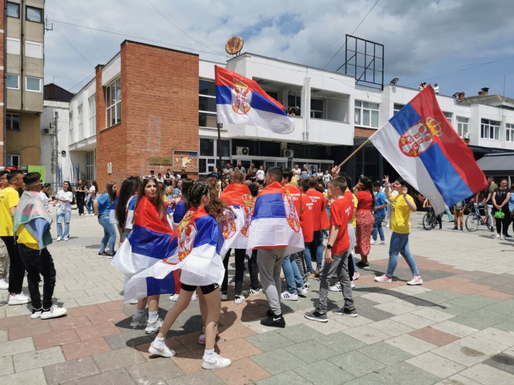 Bujanovac, 6. jun 2023. – Maturanti Osnovne škole “Branko Radičević” u Bujanovcu završili su danas redovnu nastavu i proslavili poslednji radni dan uz trubače na trgu u Bujanovcu. Noseći odštampane majice, zastave i baklje u rukama, njih osamdesetak, zajedno sa svojim nastavnicima, ispunili su centar grada igrom, pesmom i dobrom energijom. Slavlje su danas nastavili u kafiću, a proslava maturske večeri očekuje ih 13. juna u jednom bujanovačkom restoranu.