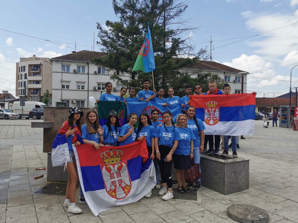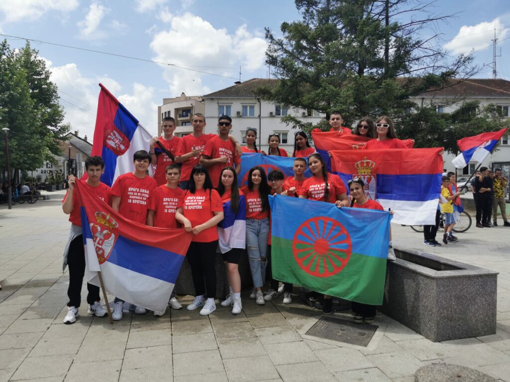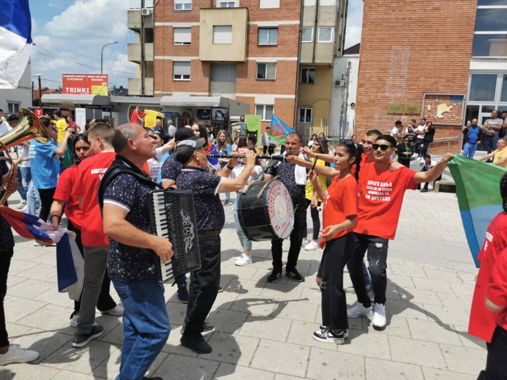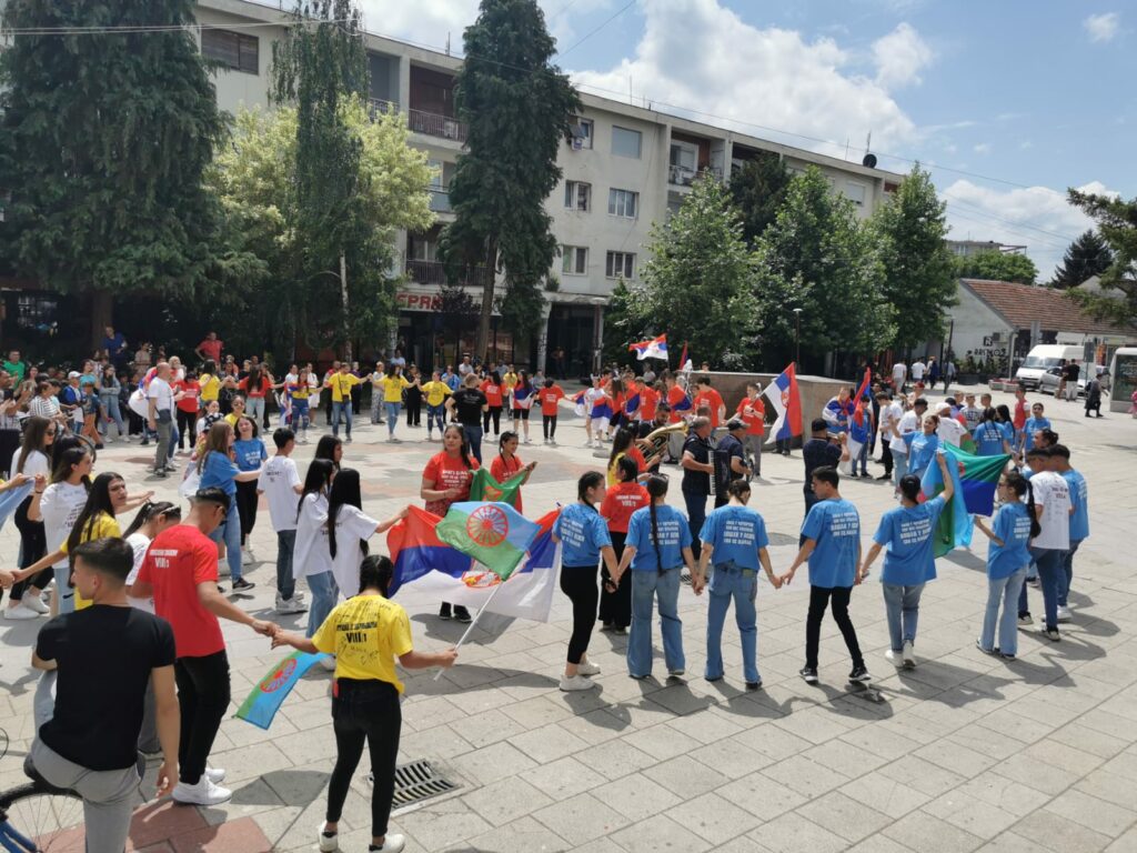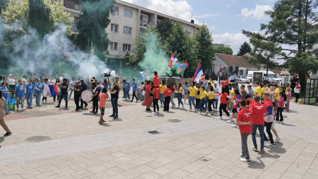 Bujanovac, 6. jun 2023. – Maturanti Osnovne škole “Branko Radičević” u Bujanovcu završili su danas redovnu nastavu i proslavili poslednji radni dan uz trubače na trgu u Bujanovcu. Noseći odštampane majice, zastave i baklje u rukama, njih osamdesetak, zajedno sa svojim nastavnicima, ispunili su centar grada igrom, pesmom i dobrom energijom. Slavlje su danas nastavili u kafiću, a proslava maturske večeri očekuje ih 13. juna u jednom bujanovačkom restoranu.