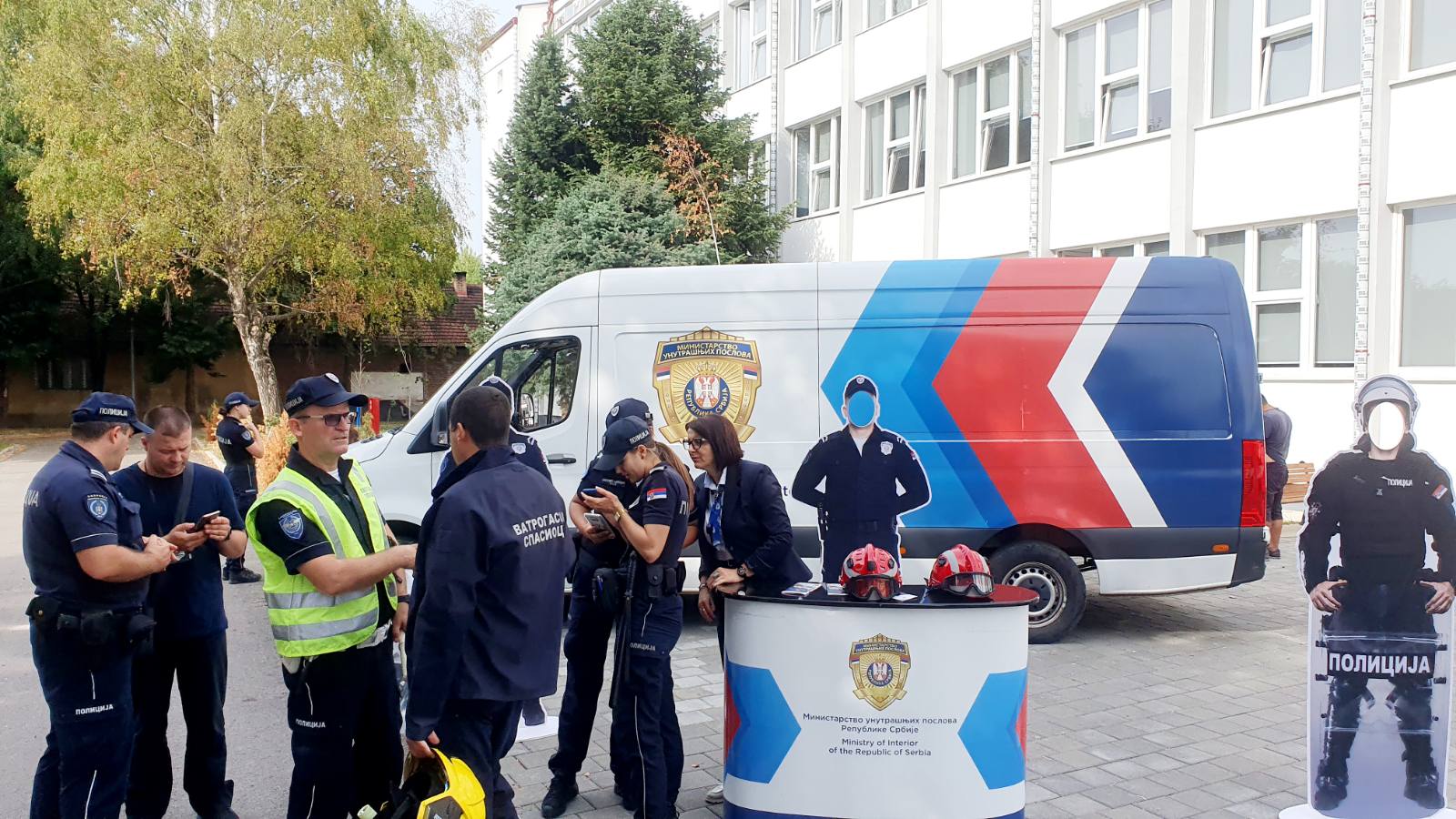 Bujanovac, 9. septembar 2024. – Bujanovački policajci i vatrogasci družili su se u ponedeljak sa učenicima Osnovne škole “Branko Radičević” u Bujanovcu. Aktivnost je sprovedena u okviru projekta „Zajedno i bezbedno kroz detinjstvo“, koji realizuje Ministarstvo unutrašnjih poslova u saradnji sa Ministarstvom prosvete.